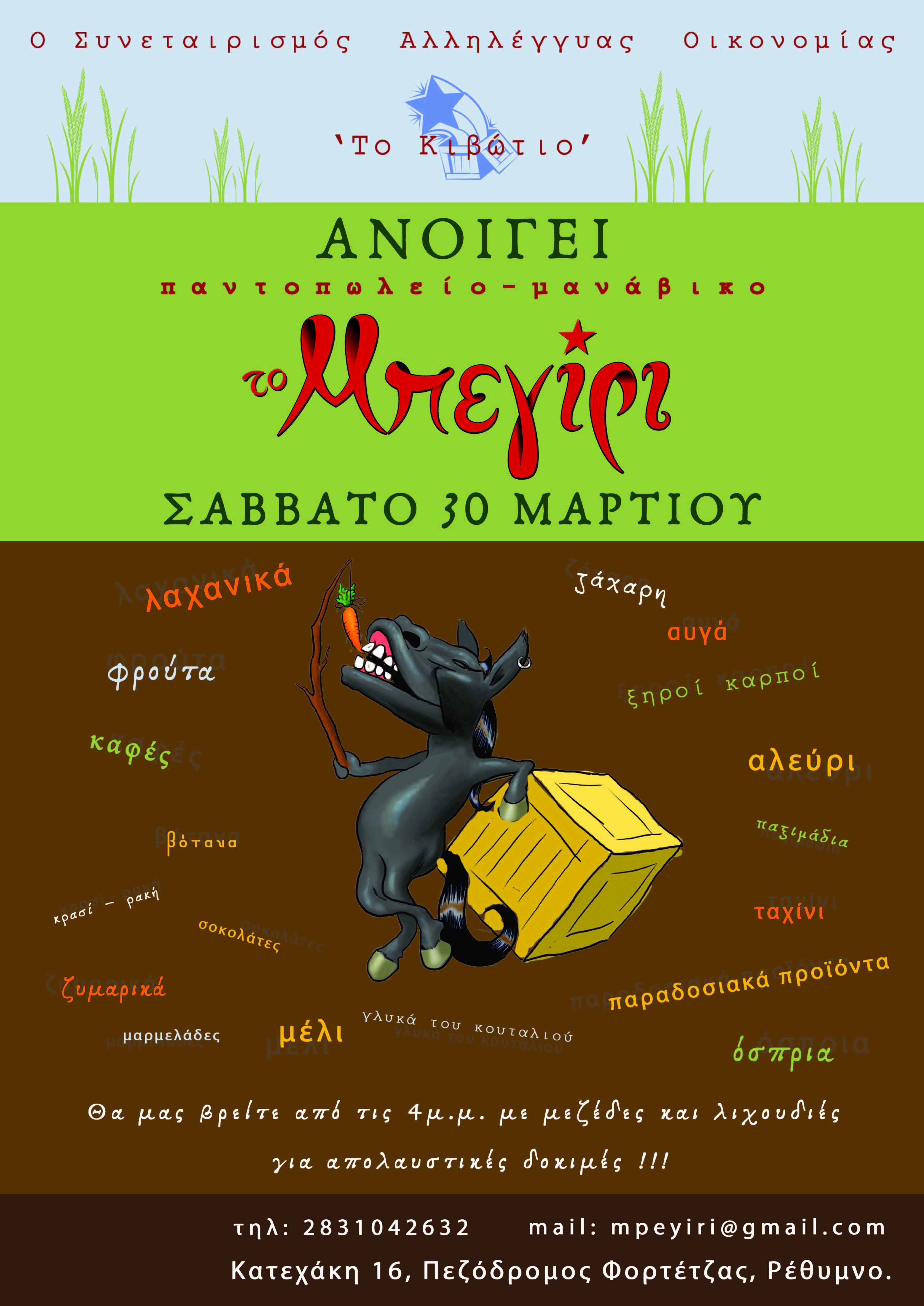 ενδιαφέρεται για το εγχείρημα. Τα λέμε από κοντά, Βαγγέλης, Χρήστος, Έλενα -- Συνεργατικό Παντοπωλείο-Μανάβικο 'Το Μπεγίρι' |