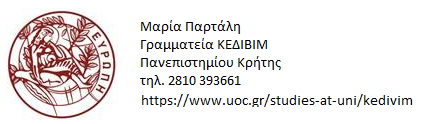 ΘΕΜΑ: Επιμορφωτικό πρόγραμμα «Συγκριτική, Ποιοτική και Ποσοτική Ανάλυση Δεδομένων»- ΚΕΔΙΒΙΜ ΠΚ ΑΠΟΣΤΟΛΕΑΣ: Maria Partali <partalim@xxxxxx> Παρακαλούμε δείτε το σχετικό αρχείο: http://news.uoc.gr/news/2022/15-11/ΑΦΙΣΑ.PDF Το ΚΕΔΙΒΙΜ του Πανεπιστημίου Κρήτης διοργανώνει επιμορφωτικό πρόγραμμα με τίτλο «Συγκριτική, Ποιοτική και Ποσοτική Ανάλυση Δεδομένων». Το πρόγραμμα έχει διάρκεια 3 μήνες (Δεκέμβριος 2022 έως Μάρτιος 2023, συνολικά 160 διδακτικές ώρες) και πρόκειται να διεξαχθεί με τη μέθοδο της εξ αποστάσεως εκπαίδευσης. Έναρξη : Δεκέμβριος 2022 Λήξη : Μάρτιος 2023 https://kedivim.uoc.gr/index.php/el/programmata/ola-ta-programmata/trexonta Τηλέφωνο : 2831077641 Ε-mail : kpirgiotaki@uoc.gr Υποβολή αιτήσεων έως 30/11/2022 https://kedivim.uoc.gr/index.php/el/aitisi/aitisi-symmetoxis-se-programma Επισυνάπτεται η αφίσα του προγράμματος -- |