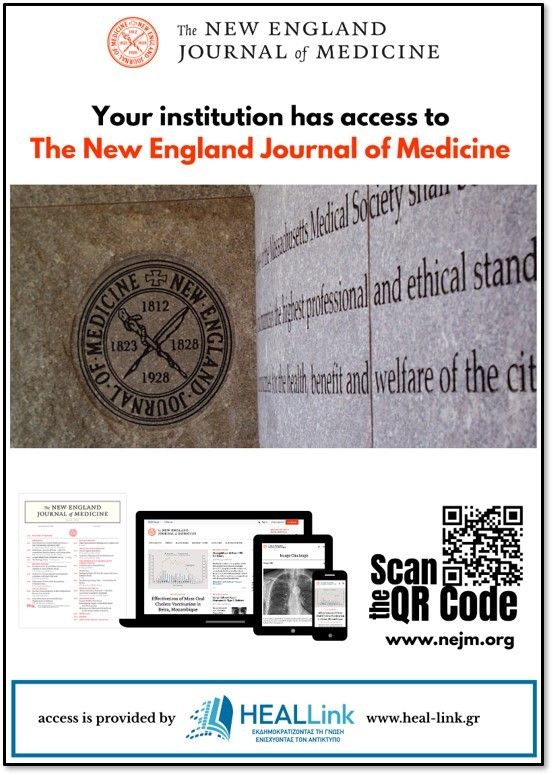 ΘΕΜΑ: Ενεργοποίηση πρόσβασης μέσω ΣΕΑΒ στο περιοδικό "The New England Journal of Medicine" ΑΠΟΣΤΟΛΕΑΣ: Manolis Koukourakis <manolis@xxxxxx> Παρακαλούμε δείτε το σχετικό αρχείο: https://news.uoc.gr/news/2025/02-12/NEJM_Evidence.pdf Ενημερώνουμε τα μέλη της ακαδημαϊκής κοινότητας του ΠΚ ότι από 1/12/2025 ενεργοποιήθηκε η πρόσβαση μέσω ΣΕΑΒ στο περιοδικό New England Journal of Medicine & NEJM Evidence για όλα τα Πανεπιστήμια και τα ερευνητικά κέντρα της χώρας. Μια ολοκληρωμένη ιατρική πηγή Το New England Journal of Medicine (NEJM) είναι η πιο αξιόπιστη πηγή πρωτοποριακών ιατρικών γνώσεων και βέλτιστων κλινικών πρακτικών, που συμβάλλει στη διαμόρφωση του μέλλοντος της ιατρικής, στην ενημέρωση των πολιτικών υγειονομικής περίθαλψης σε όλο τον κόσμο και στην προώθηση της φροντίδας των ασθενών.