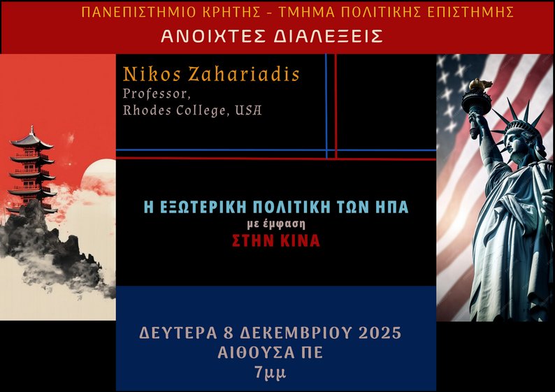 ΘΕΜΑ: Ευγενική Υπενθύμιση: Πανεπιστήμιο Κρήτης - Τμήμα Πολιτικής Επιστήμης- Ανοιχτές Διαλέξεις ΑΠΟΣΤΟΛΕΑΣ: Pelagia Tsakiraki <tsakiraki@xxxxxx> Παρακαλούμε δείτε το σχετικό αρχείο: https://news.uoc.gr/news/2025/03-12/Zahariadis_Lecture_Dec_2025.pdf Πανεπιστήμιο Κρήτης Τμήμα Πολιτικής Επιστήμης Ανοιχτές Διαλέξεις